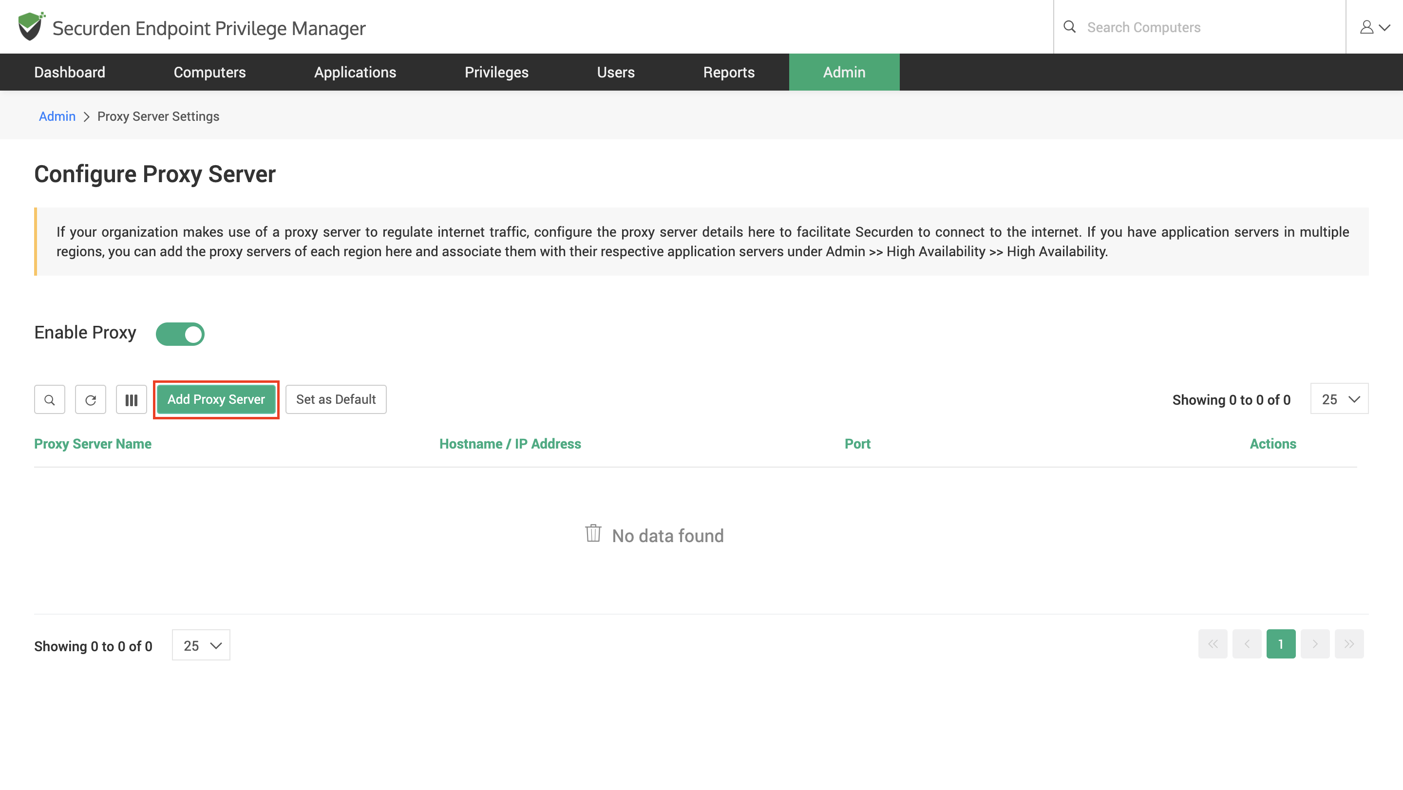 - To add a proxy server, click on Add Proxy Server.